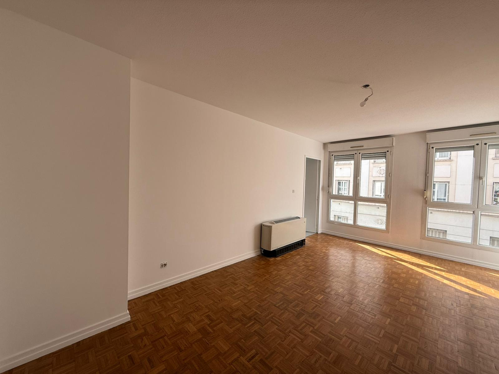 L’appartement s’ouvre sur une entrée qui va desservir le séjour et un dégagement avec placard menant à la cuisine séparée (possibilité d’ouvrir sur le salon), et à deux chambres avec placard entre lesquelles se trouvent la salle de bain et le WC séparé