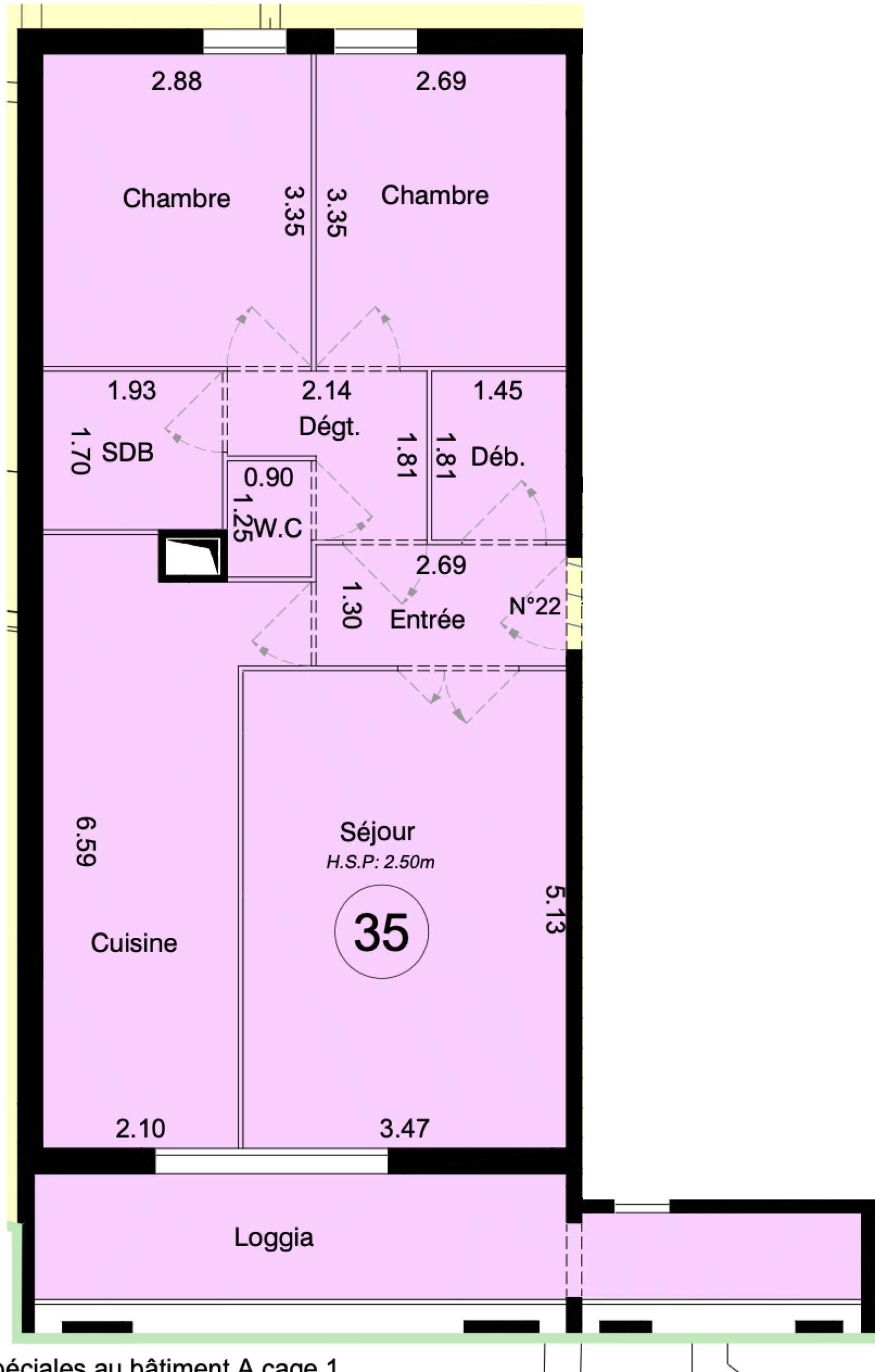 Appartement 3 pièce(s) 2 chambre(s) 64.11 m²